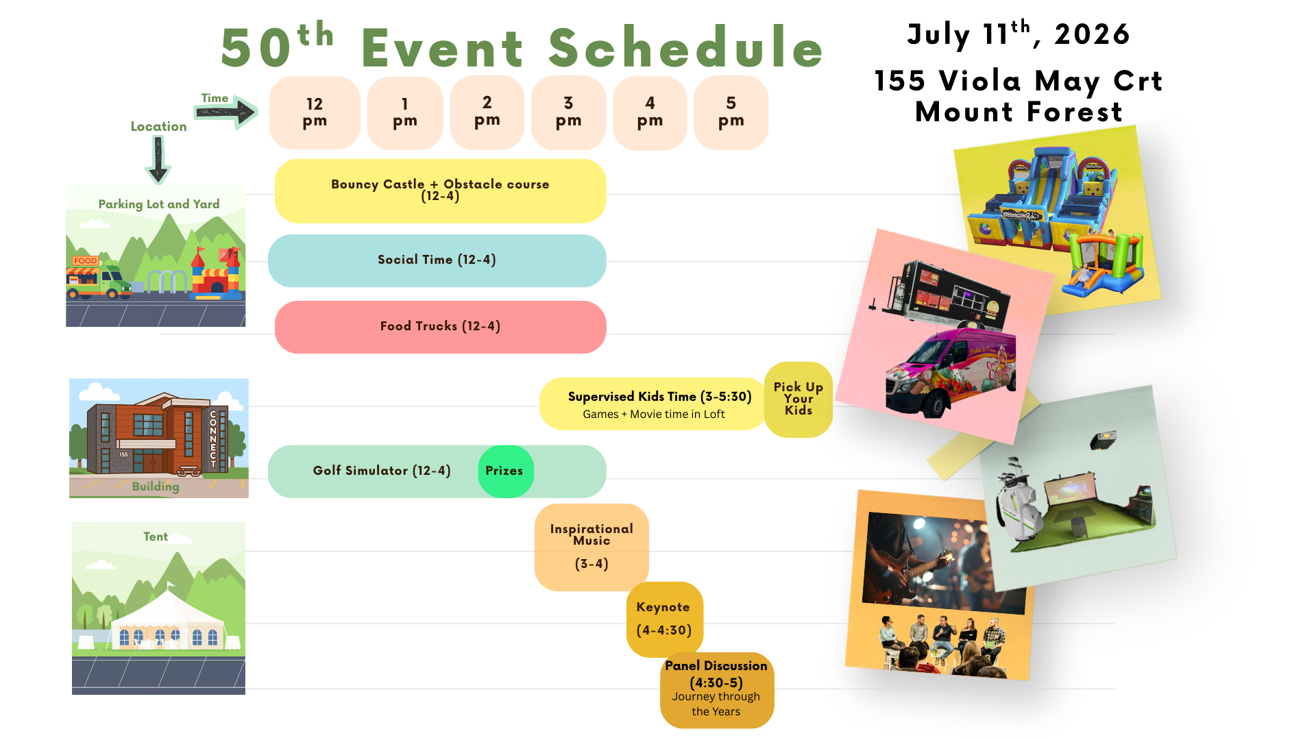 Rain or shine — we’re covered with indoor space and a large outdoor tent.